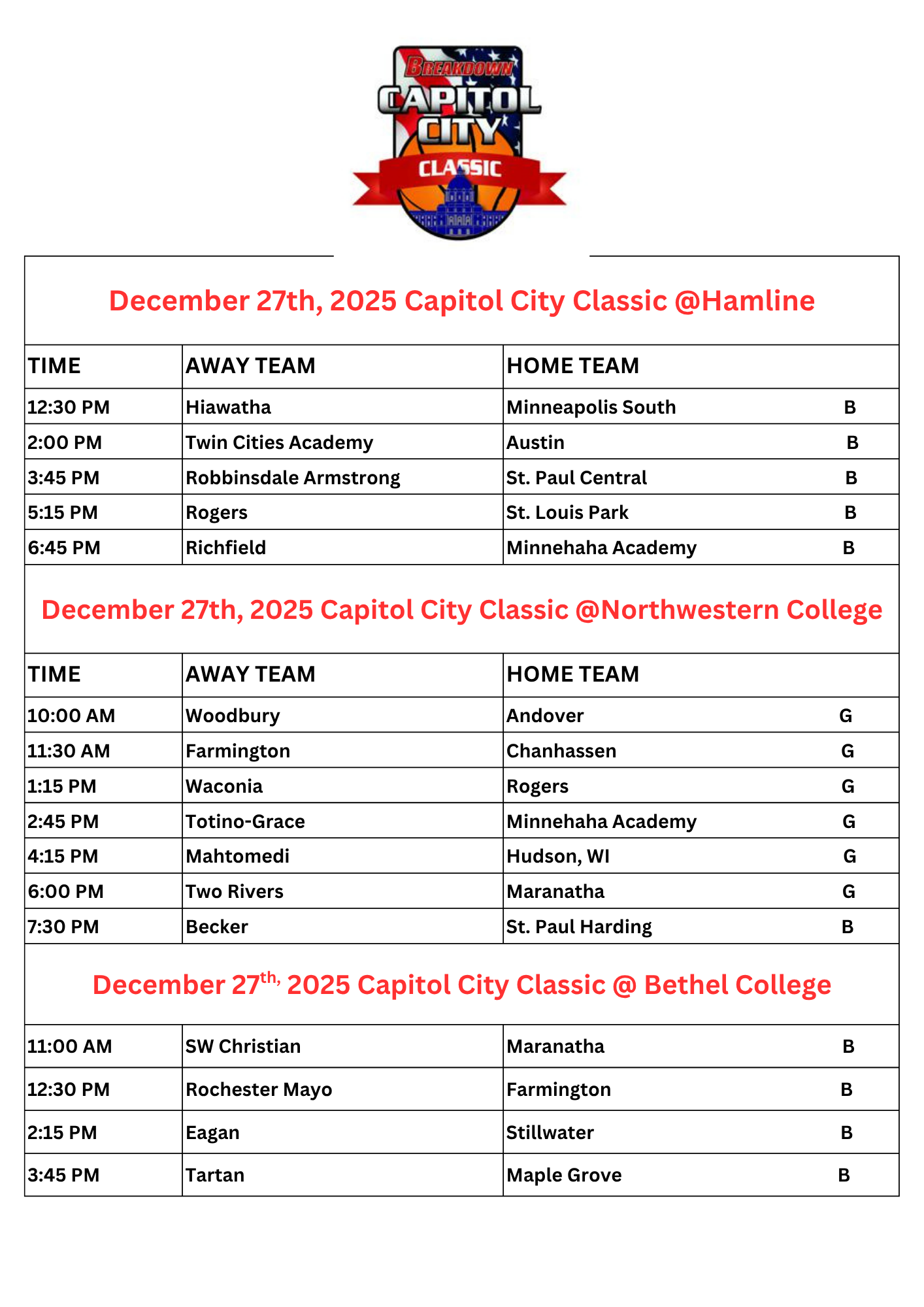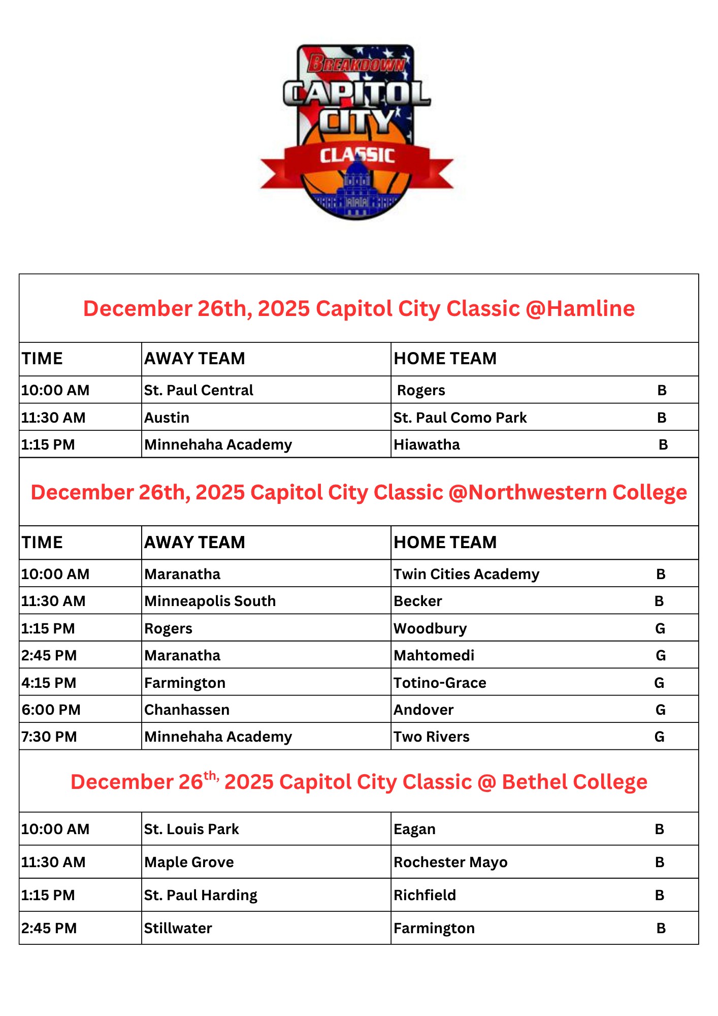The Capitol City Holiday Classic is the newest of the Breakdown’s in-season basketball tournaments. The tournament will be annually at the end of December each year.